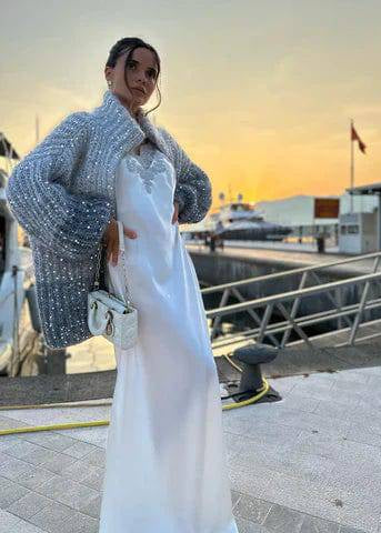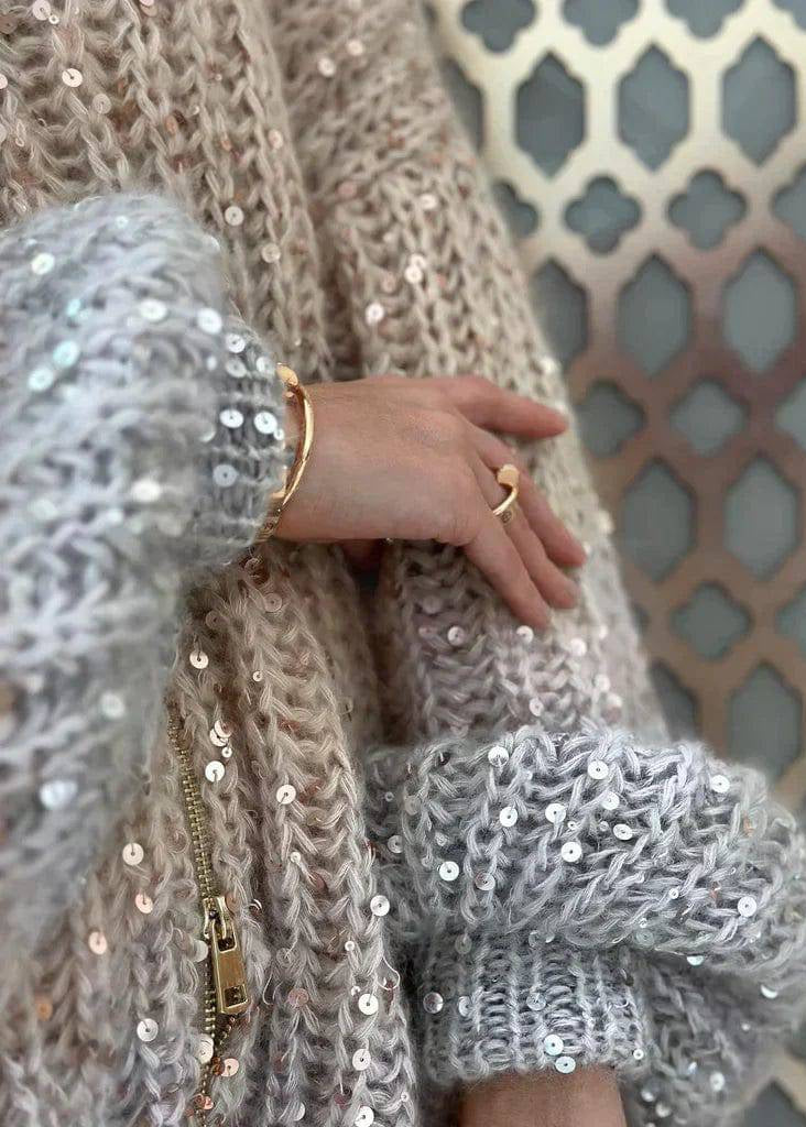 Ten kardigan to połączenie komfortu, elegancji i glamouru — idealny element, aby zwykłą garderobę zamienić w wyjątkowy look.